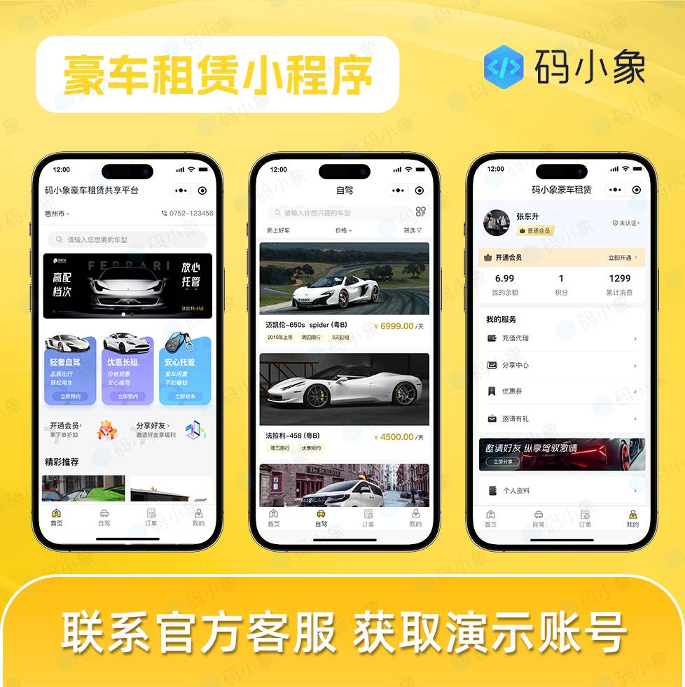 豪车租赁小程序/豪车租赁系统/豪车管理系统-便捷预约-车辆管理-车辆续租-门店管理-代客下单