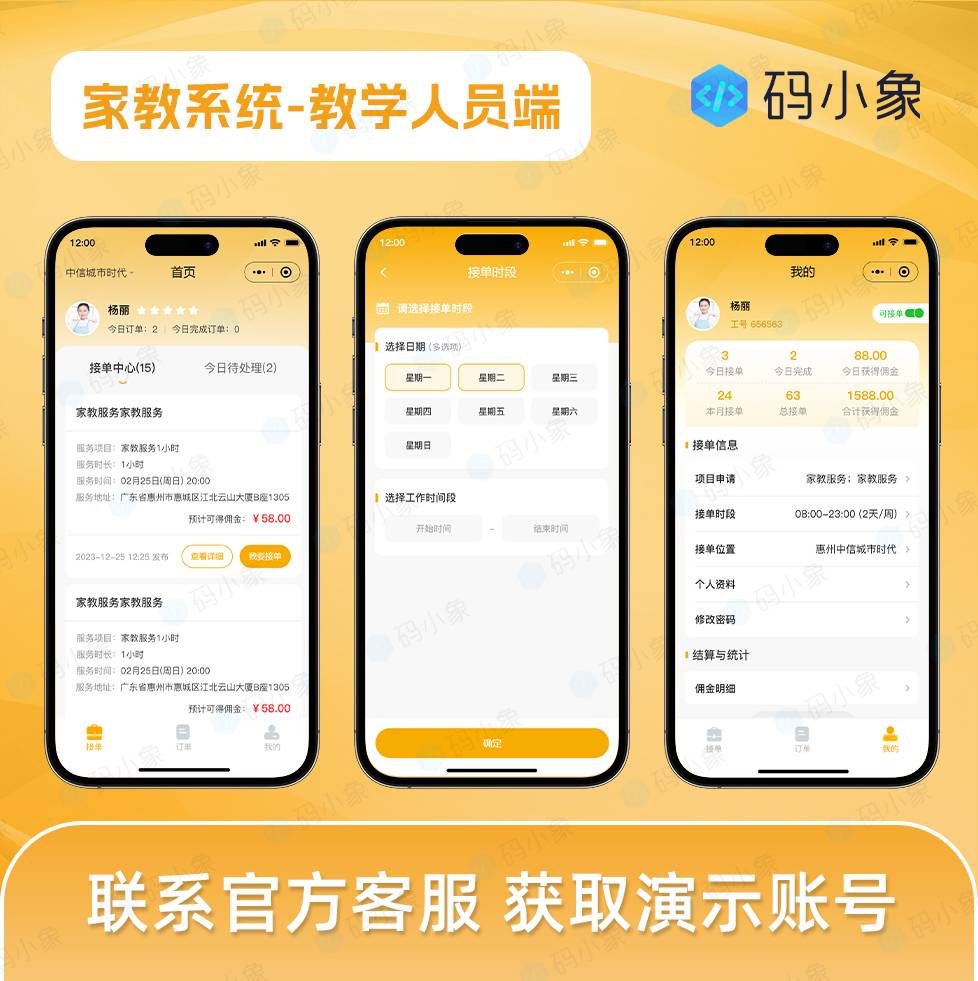 上门家教小程序角色:用户+教师端+教务端+城市代理。产品级开发,开发者文档齐全,源码交付可二开