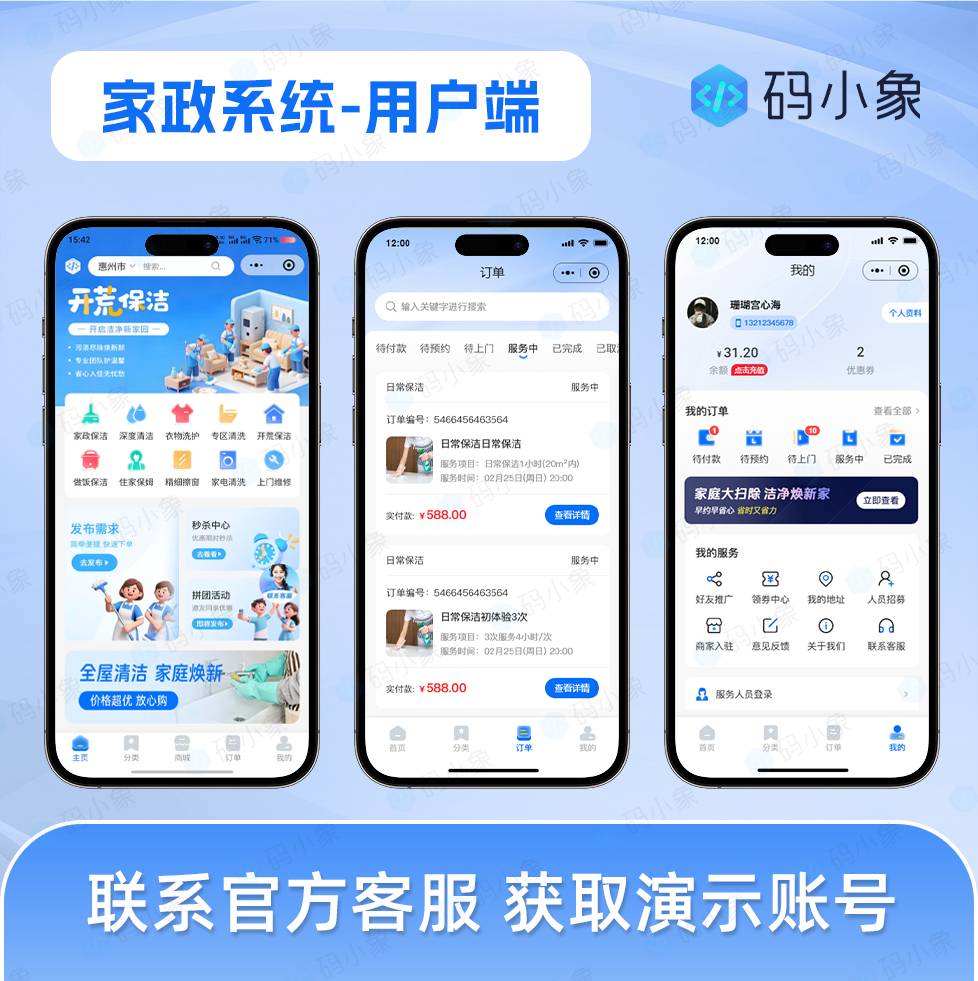 家政系统小程序源码,支持自营入驻两种运营模式+抢单派单模式结合